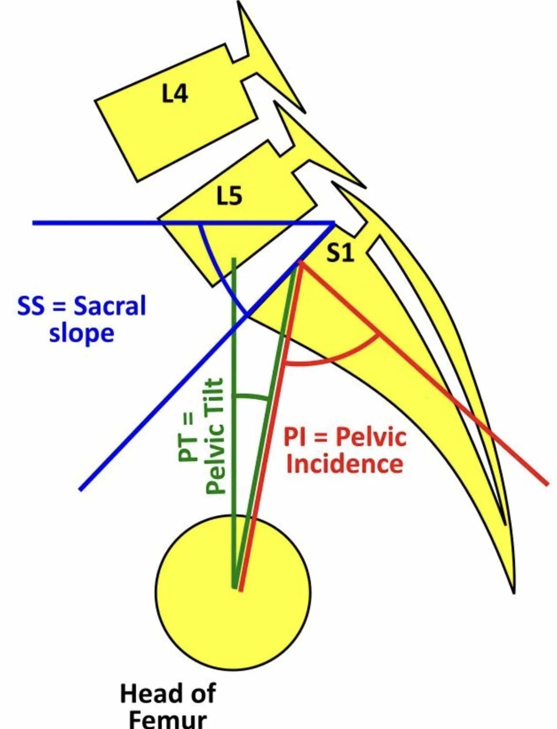 Dr. Adam Wegner thinks the association has more to do with a measurement called Pelvic Incidence (PI). PI is the angle between the line perpendicular to the sacral endplate at its midpoint and a line connecting this point to the axis of the femoral head.