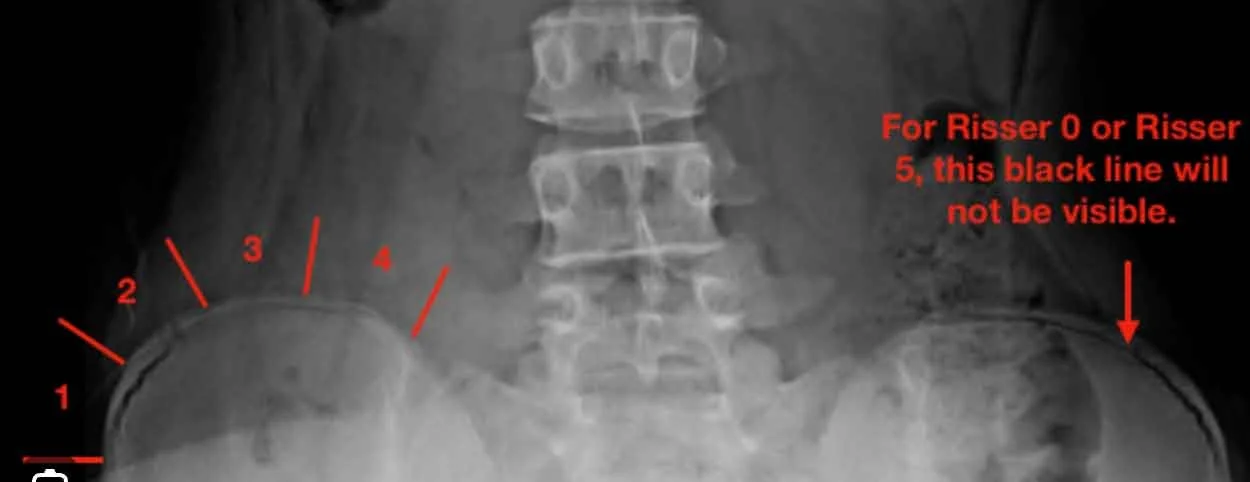 The first, the Risser sign, determined by looking at the X-ray of the hip bone, has been used since 1958.