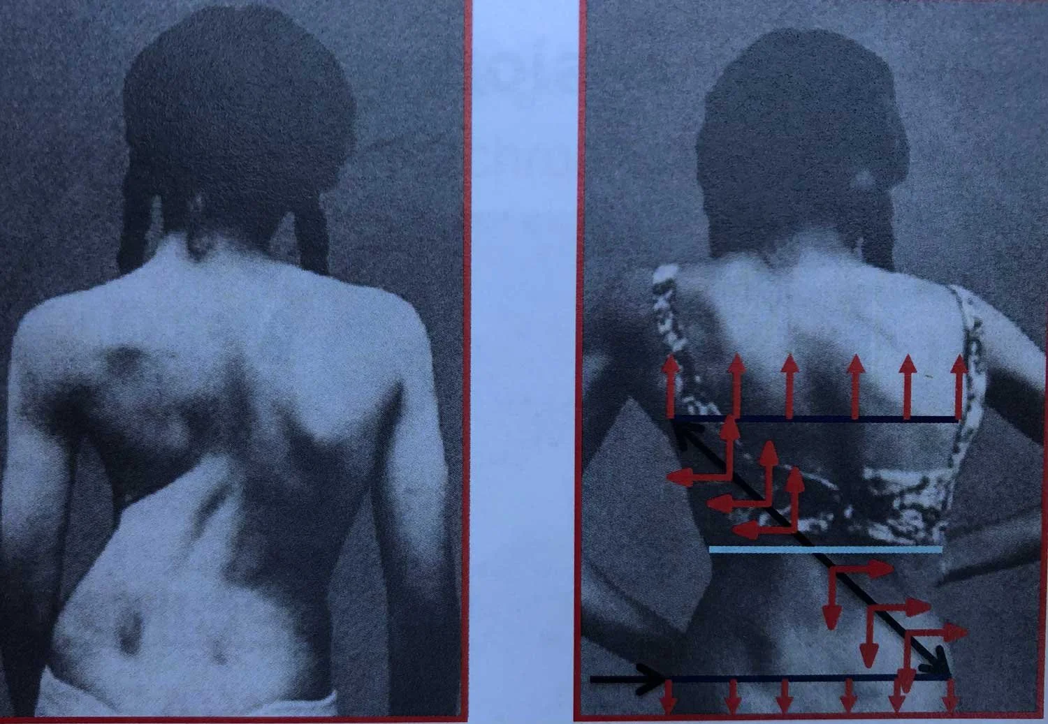 Scoliotic curvature of the spine very often pulls the entire torso over to one side – the side of the dominant curve. This pulling means that our weight shifts from being symmetrical, or 50/50 through the lower limbs, to being asymmetrical.